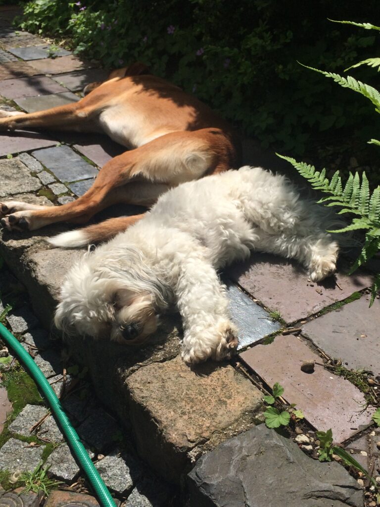 Nach dem Aufstehen und einem kurzen `HundeYoga´ geht es erstmal in den Garten – um anschließend das erste gesunde Häppchen des Tages zu kassieren. Dann wird noch etwas auf dem Sofa gekuschelt. Gegen 9.00 Uhr machen wir uns auf den Weg: Revier sondieren und sichern ist angesagt. Nach „getaner Arbeit“ gibt es dann Frühstück. Jetzt wird erstmal ein verdientes Schläfchen gehalten. Wenn das Futter verdaut ist, werden die meisten wieder aktiv. Bei schönem Wetter geht es in den Garten, sonst wird gespielt oder am Fenster nach Katzen Ausschau gehalten. Je nach Wetterlage geht es am Nachmittag wieder raus. Am frühen Abend erfolgt die heißersehnte zweite Mahlzeit. Und wieder Pause für die satten Bäuche. Der Abend ist je nach Jahreszeit und Wetterlage sehr unterschiedlich. Im Sommer sind wir mit den Vierbeinern oft draußen bis die Sterne funkeln. Oder machen nochmal einen langen Spaziergang. Im Winter ist kuscheln auf dem Sofa oder vor dem Ofen angesagt. Fernsehabende im Rudel sind bei allen sehr beliebt. Geschlafen wird dann am Ende des Tages dort, wo sich Ihr Liebling am wohlsten fühlt.